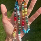 It is primarily composed of natural stones such as jade, chrysoprase, tiger’s eye, and lapis lazuli… Some may be natural but dyed, and occasionally they may be mixed with synthetic ones.