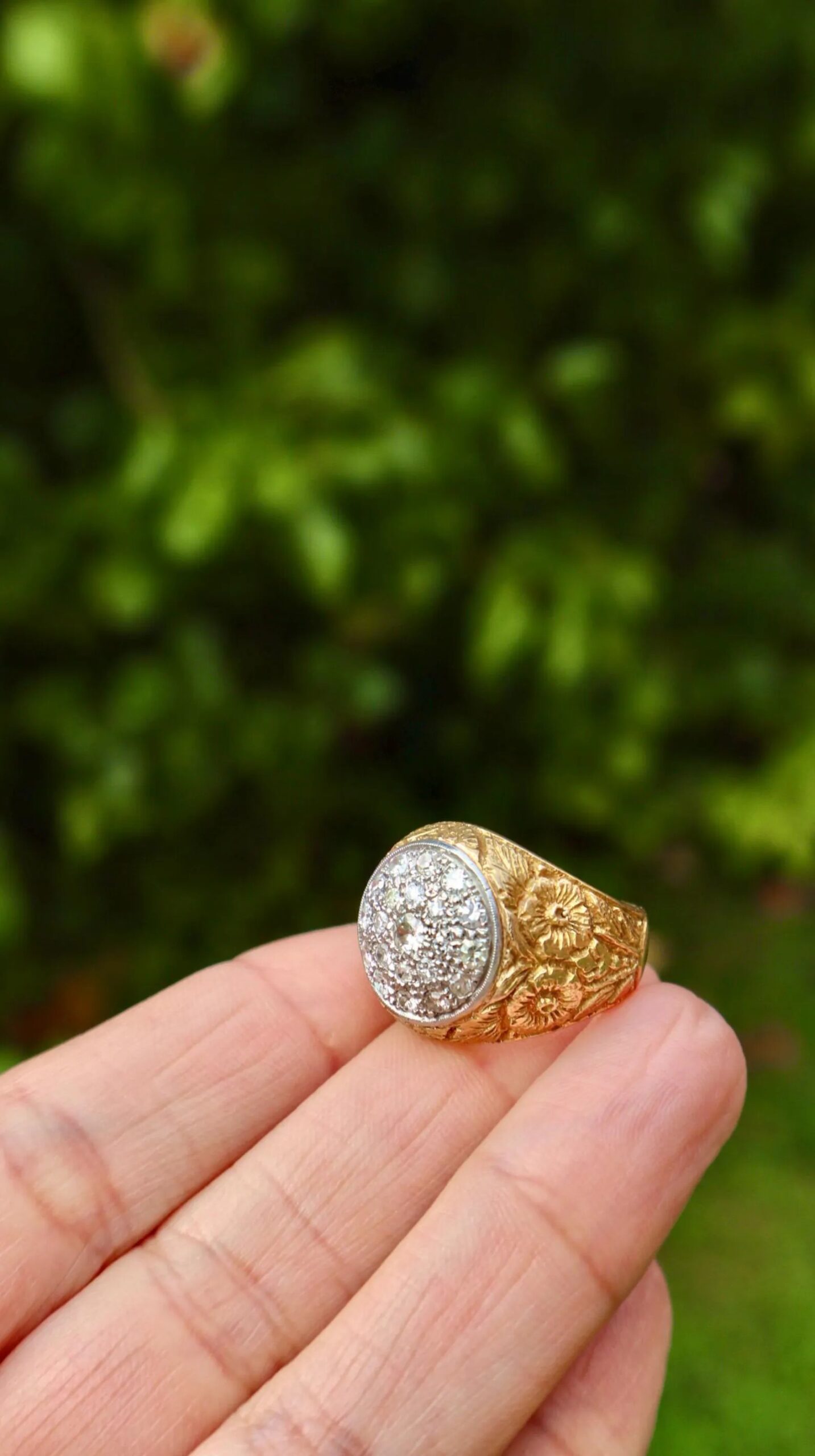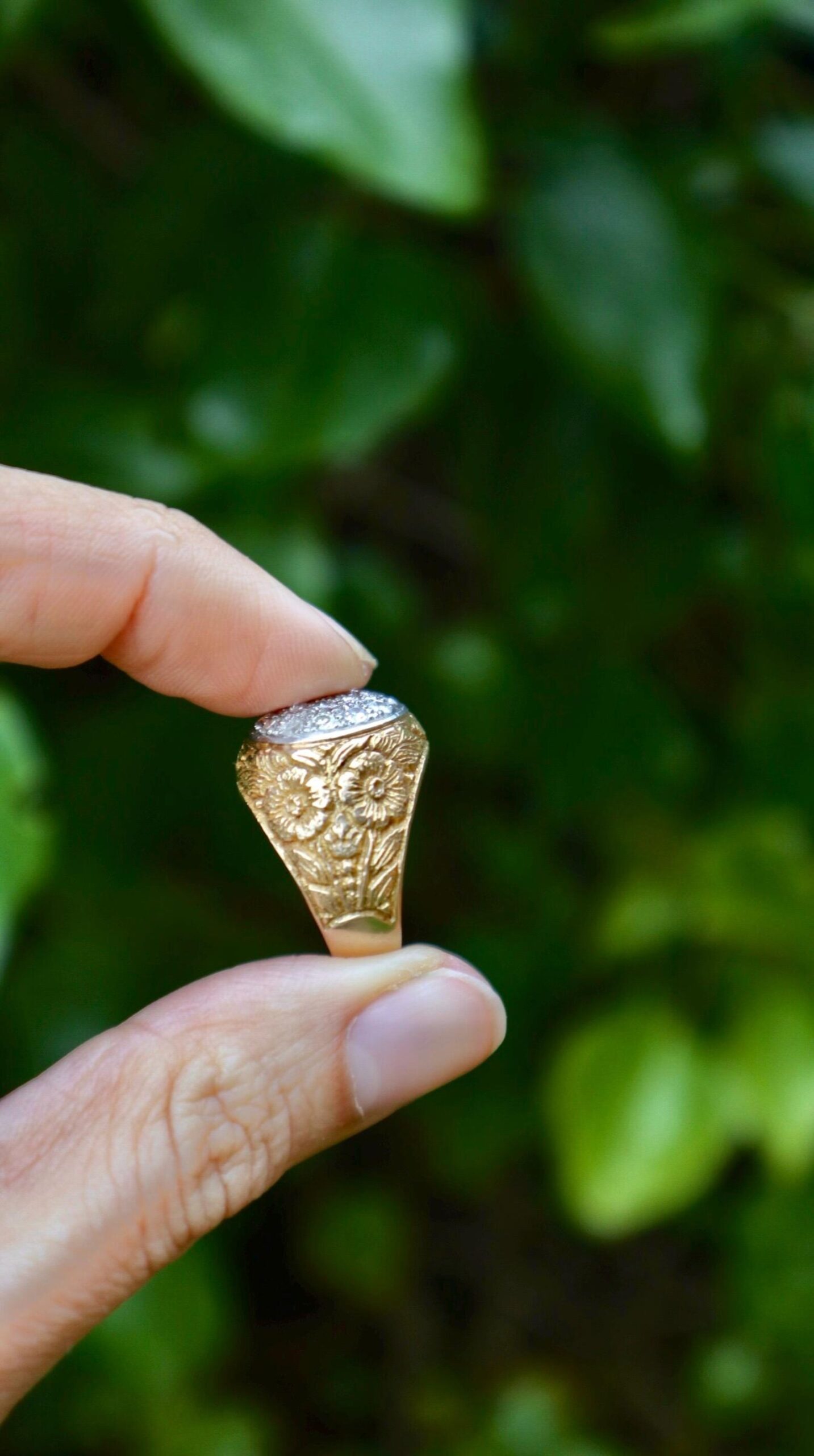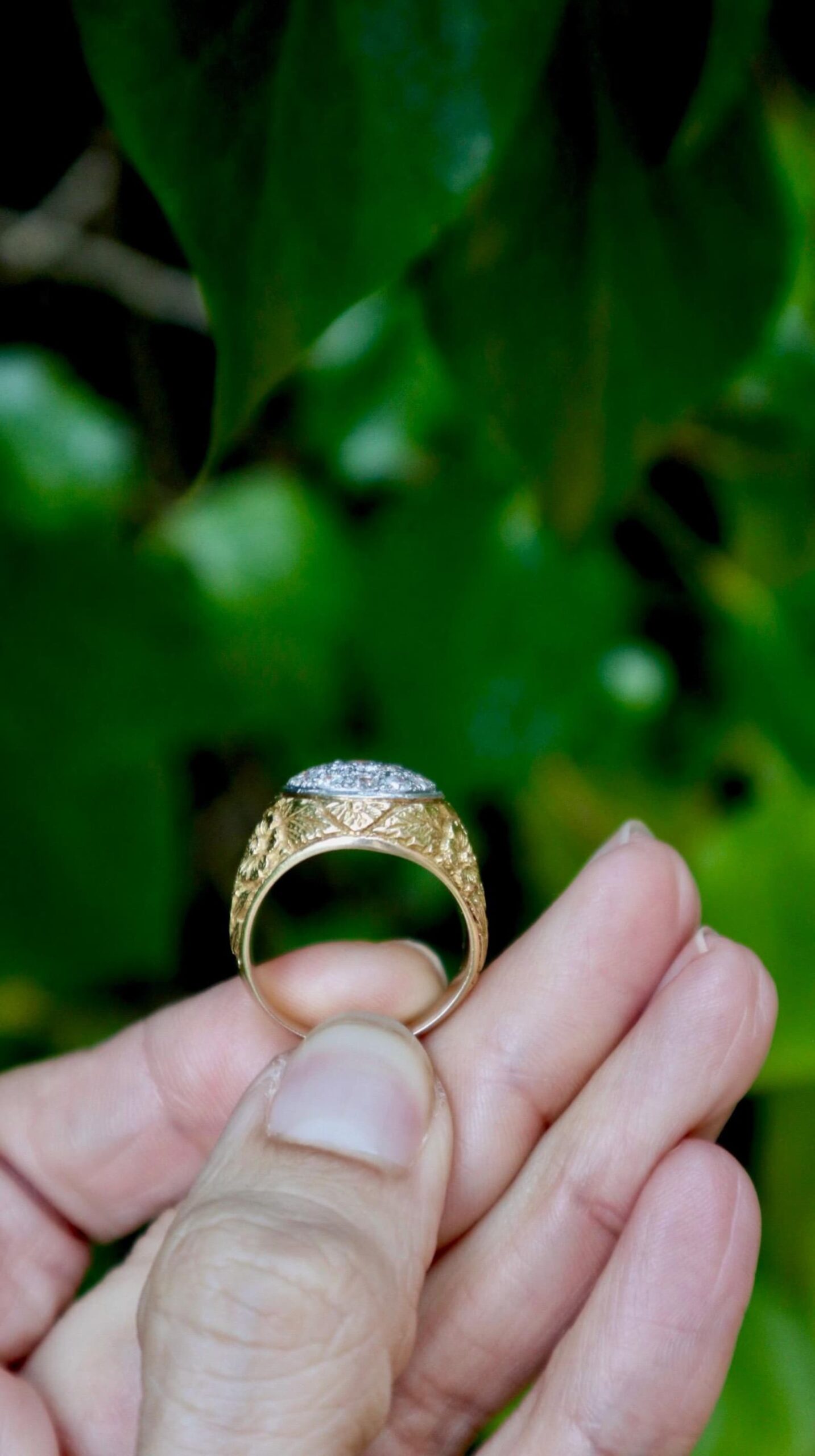 Be the first to review “Vintage ring in 18k yellow gold with diamonds with beautiful hand engraved diamonds”