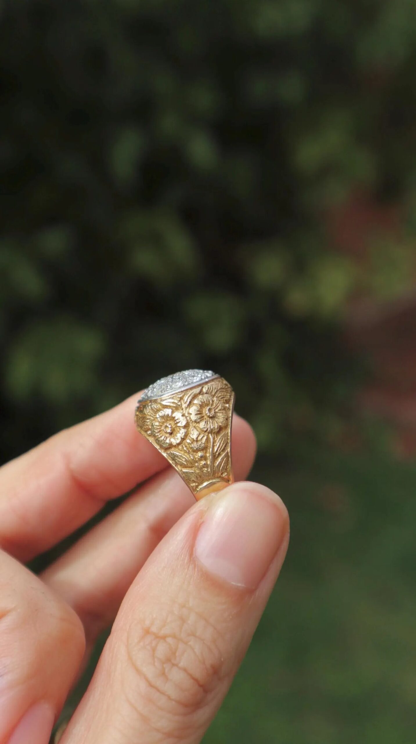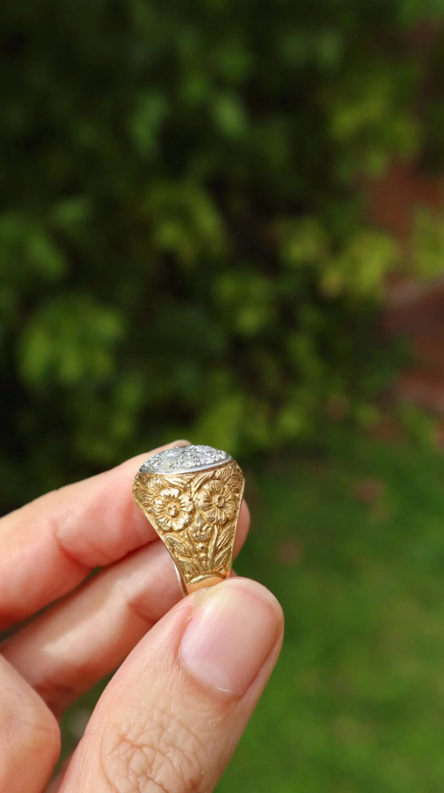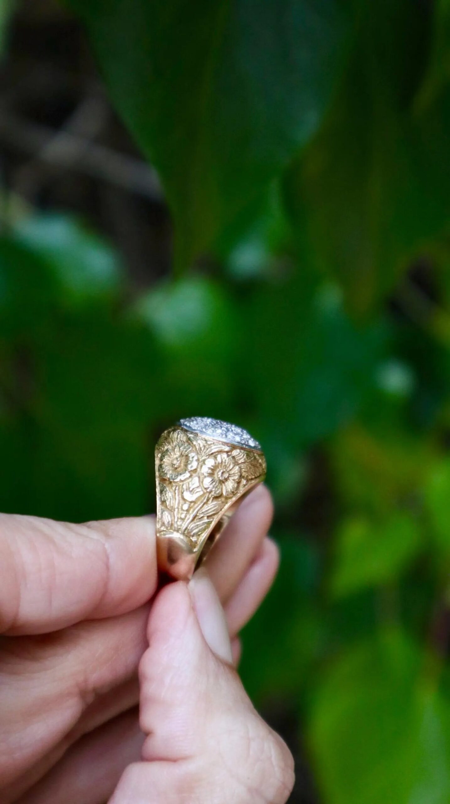 Be the first to review “Vintage ring in 18k yellow gold with diamonds with beautiful hand engraved diamonds”